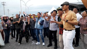 Bahkan Bupati Sukoharjo, Etik Suryani, dan seluruh jajaran Forkopimda ikut naik panggung.