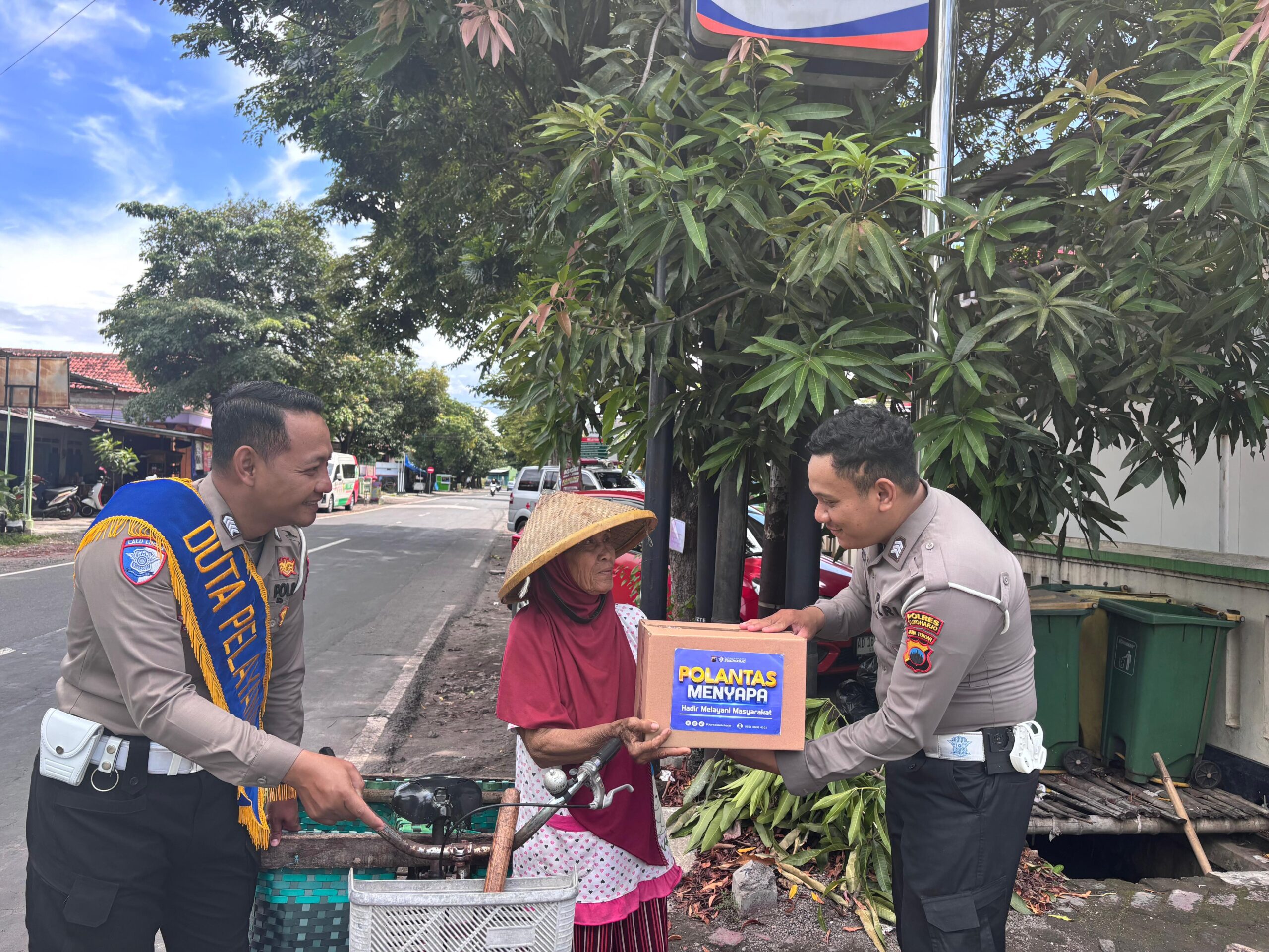 Selain aksi bagi-bagi sembako, jajaran Satlantas juga memanfaatkan momen tersebut untuk memberikan edukasi singkat kepada pengendara.