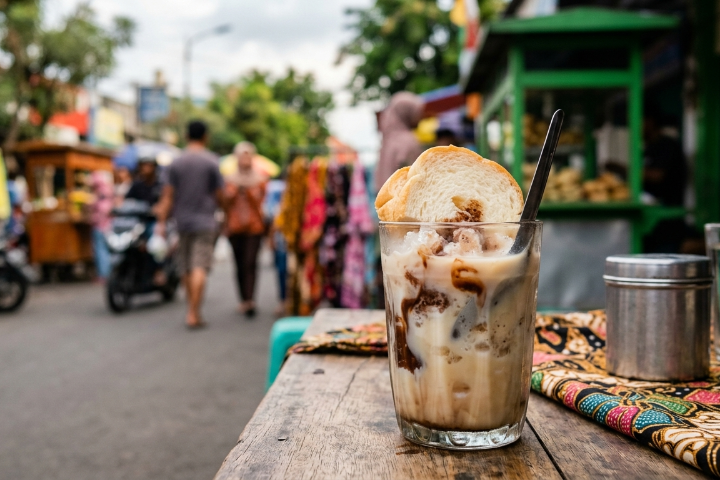 Minuman yang populer sejak tahun 1950-an ini terdiri dari campuran santan, sirup cokelat tradisional dari gula jawa, dan es parut, yang disajikan dengan sepotong roti tawar untuk dicelupkan.