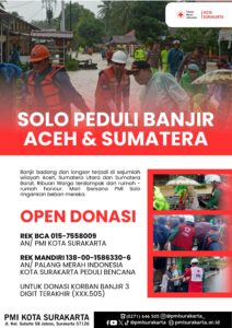 - Mandiri: 138-00-1586330-6 (a.n. Palang Merah Indonesia Kota Surakarta Peduli Bencana)