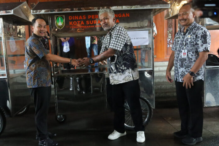 Solokini.com, Solo – Walikota Surakarta (Solo) Respati Ardi menyerahkan secara langsung bantuan gerobak usaha kepada 19 pelaku Usaha Mikro Kecil dan Menengah (UMKM) dari empat kecamatan.